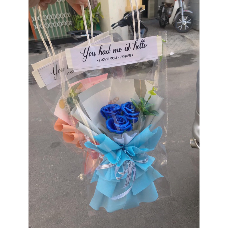 Bó 3 bông hoa sáp có lá táo tặng kèm túi xách lịch sự làm quà tặng cực xinh