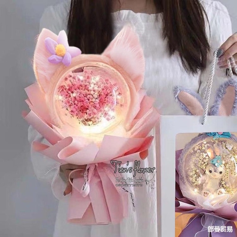 Bó hoa bóng cáo hồng Lina Belle kèm túi đèn và thiệp