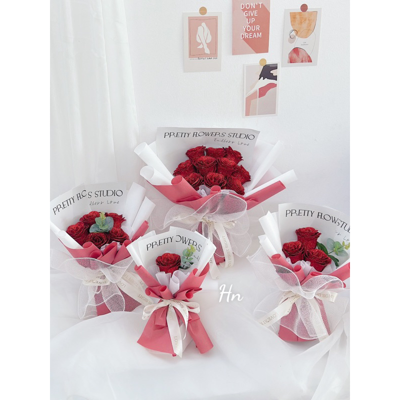 Bó hoa nhũ 1-3-5 bông kèm túi thiệp đèn