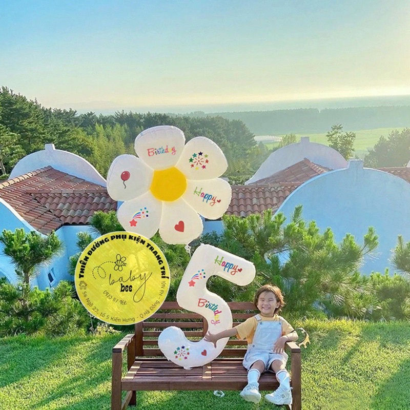 Bóng Số Màu Trắng Kèm Decan Hoạ Tiết Xinh Xắn trang trí sinh nhật nhà Baby bee