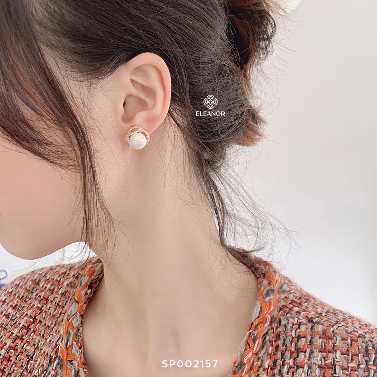 Bông tai cô dâu nữ chuôi bạc 925 Eleanor Accessories ngọc trai nhân tạo đính đá phụ kiện trang sức 2157