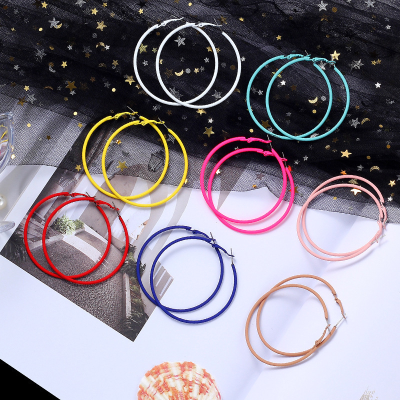 Bông tai khuyên tai nữ khuyên tai tròn 5cm, Hoa tai tròn lớn nhiều màu