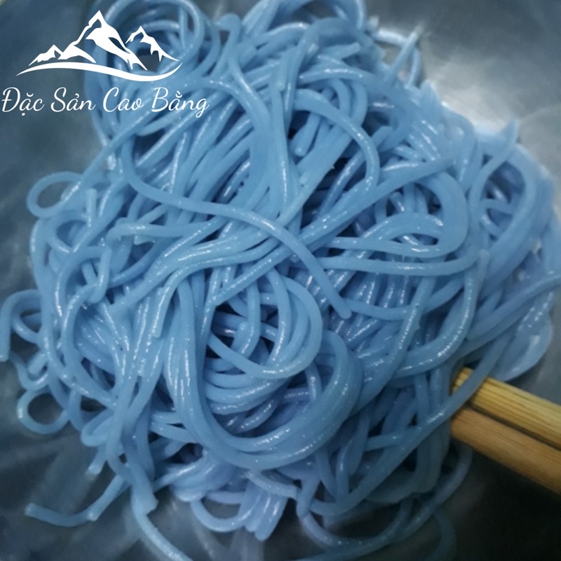 Bún hoa đậu biếc được làm từ 100% tinh bột gạo hòa quyện với nước hoa đậu biếc. Hái hoa đậu biếc trong nhà đun lên, lọc lấy nước rồi trộn với gạo ngâm qua đêm. Sau đó đem gạo xát thành bột, trộn thêm nước hoa đậu biếc để lên màu. Đem hỗn hợp vừa trộn cho vào ép để ra sản phẩm. Sau đó ra khuôn rồi thì phơi khô. Sợi bún sau khi phơi khô cho màu xanh tự nhiên rất đẹp mắt. Bún hoa đậu biếc sử dụng các nguyên liệu từ thiên nhiên, hợp vệ sinh đặc biệt là được làm theo phương pháp truyền thống của bà con Cao Bằng nên cho sợi bún màu xanh biếc, khi nấu sợi bún to, giai ăn rất ngon và sử dụng cho nhiều món ăn hấp dẫn. Ngâm bún khô Cao bằng với nước lạnh khoảng 5-10 phút. Nấu một nồi nước sôi và thả bún đã ngâm vào nước đun sôi lên khoảng 5 phút đến khi sợi bún mềm ra (Ủ bún). Rửa lại bằng nước sạch, cho bún ra đĩa và sử dụng theo sở thích. Bún được chế biến thành nhiều món: Bún xào, Bún trộn, Bún sốt, Bún làm nộm, Bún nấu canh nước hầm xương…