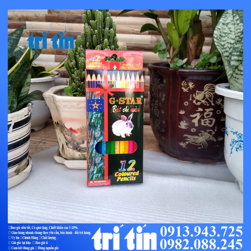 Bút chì màu G-Star 12-24 36 màu [VPP TRÍ TÍN] Bút Chì Màu G-Star bao gồm 12 -18- 24 -36 sắc màu sinh động, bé có thể tha hồ sáng tạo nên những tác phẩm nghệ thuật cho riêng mình. Lõi chì mềm, chỉ cần tô nhẹ, chất màu sẽ lên rất đều, đậm, mịn màng và sắc nét. Bộ ch
