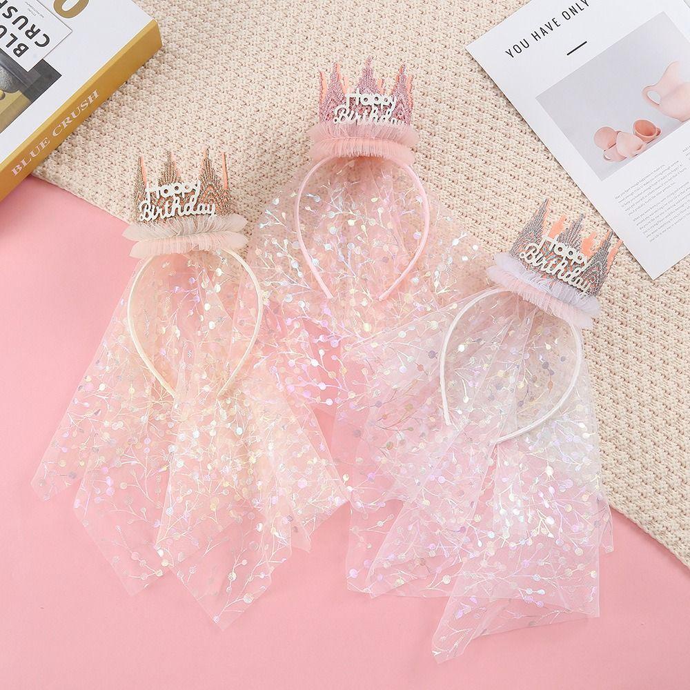 Băng Đô Cài Tóc Phối Ren Lưới Hình Vương Miện Phong Cách Hàn Quốc Cho Nữ