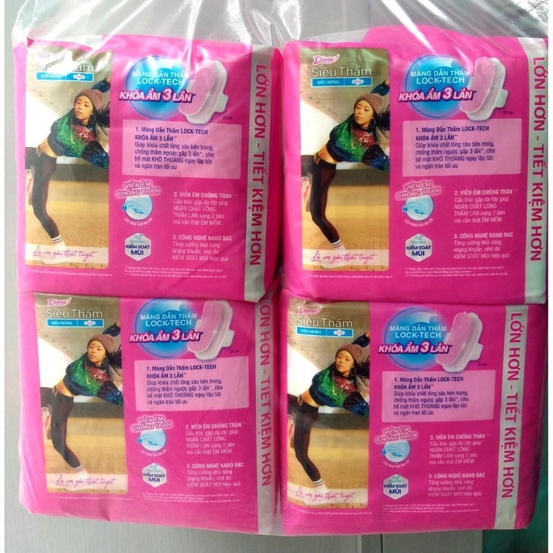 Băng Vệ Sinh Diana Siêu Thấm Siêu Mỏng Cánh 23cm (Gói 20 Miếng) có kiểu dáng thời trang độc đáo vừa vặn ôm sát cơ thể ngay cả khi vận động. Độ dày phù hợp và thấm hút vượt trội cho bạn gái luôn tự tin ngay cả trong ngày nhiều 1. Màng dẫn thấm LOCK TECH – KHÓA ẨM 3