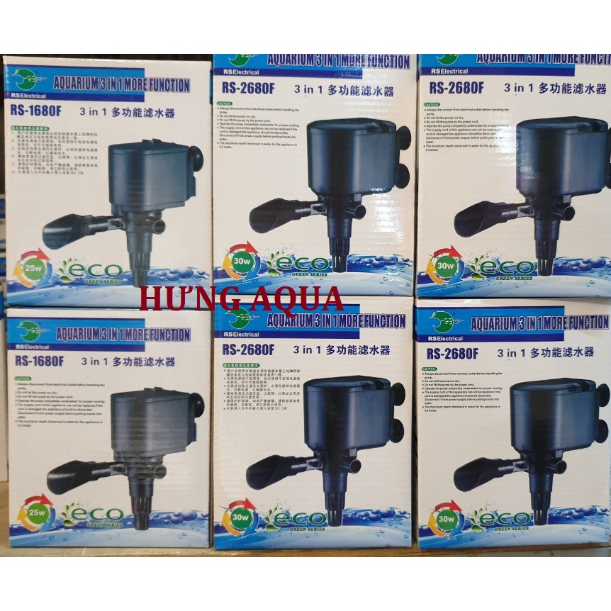 Bơm bể cá, máy bơm nước hồ cá RS-2680F 30W 3 trong 1 siêu bền (bán chạy) RS Electrical là hãng sản xuất nổi tiếng chuyên các dòng phụ kiện thủy sinh như máy bơm, máy lọc, sưởi điện với giá thành rẻ so với hiệu năng của máy, nhiều tính năng và chạy bền bỉ. Tiêu chuẩn
