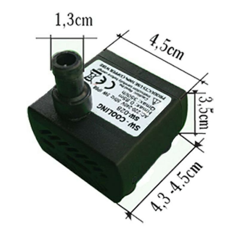 Chuyên dụng cho quạt điều hòa, hơi nước Daikio Công suất: 5w độ cao cột áp: 850 cm Q max: 350 lít/h Điện áp: 220 / 240-50Hz Cân nặng cả hộp: 0,3kg Những tính năng ưu việt sau: Máy bơm quạt điều hòa chất lượng cao, vận hành êm không gây tiếng ồn. Dễ dàng lắp đặt ngâm trong nước, an toàn tuyệt đối . An toàn, bền bỉ và tiết kiệm năng lượng. Siêu im lặng và hiệu quả. Hoàn toàn chìm trong bể . Đầu hút nước sát với đáy thùng nước nên dùng mục nước bơm rất thấp.