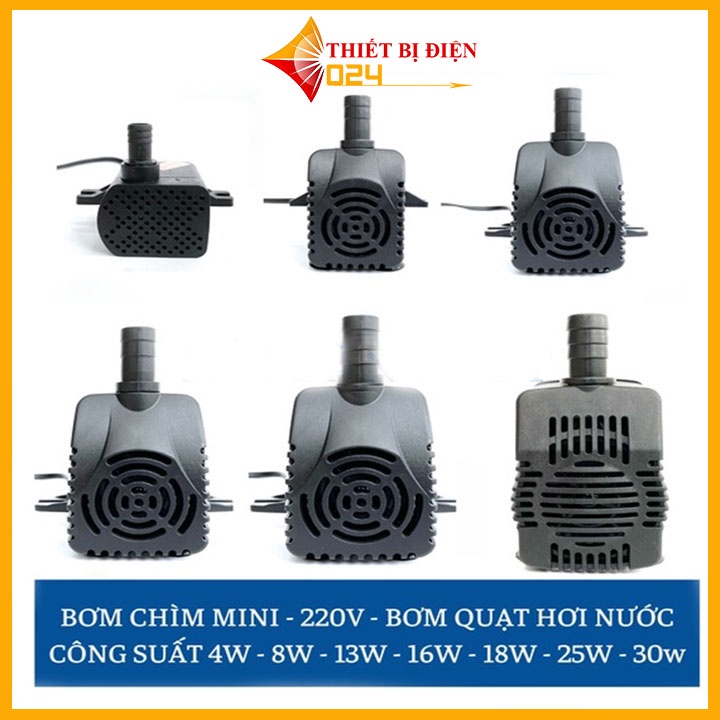 Bơm chìm mini 4W 8W 13w 18W 25W - 220V quạt điều hoà hơi nước - bể cá thủy cảnh