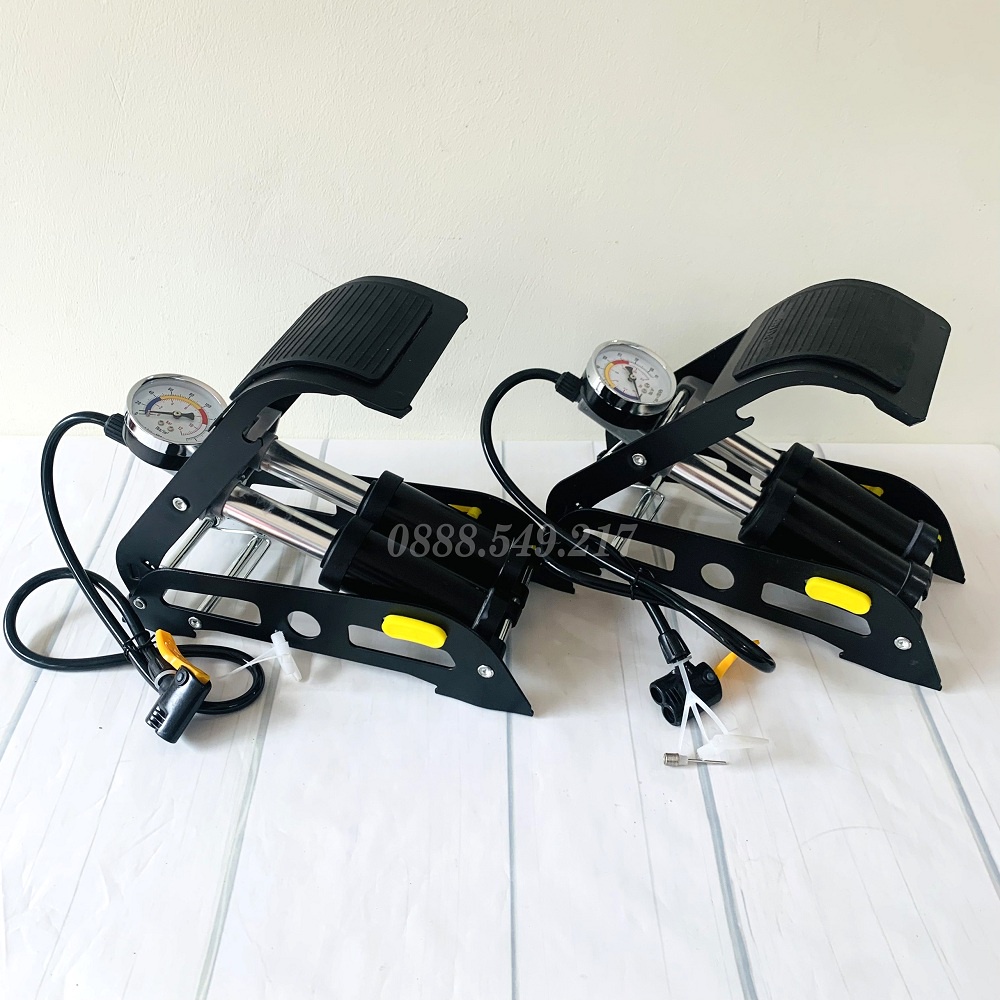 Bơm xe đạp xe máy. Bơm xe đạp chân đồng hồ chính xác 2 piton siêu khỏe