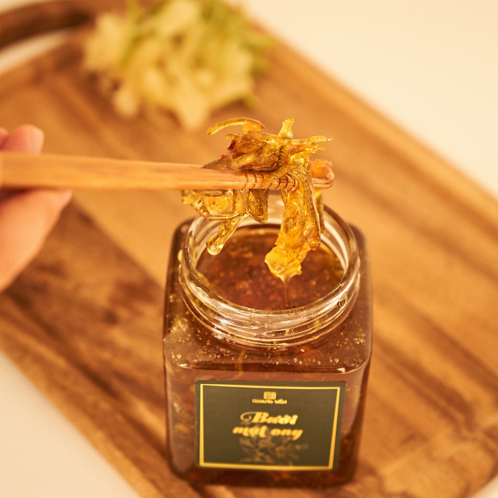 Đại Cát Quang Yến là nhãn hiệu uy tín về thực phẩm bổ dưỡng với các sản phẩm yến sào, yến chưng tươi nguyên chất, sâm Hàn Quốc ngâm mật, chè nhựa đào, mật ong…. Từ những ngày đầu thành lập vào năm 2014, chúng tôi luôn nỗ lực hết mình trong việc hoàn thiện sản phẩm để đem đến cho khách hàng những trải nghiệm tuyệt vời nhất. BƯỞI MẬT ONG Bưởi ngâm mật ong là một phương thuốc đông y lâu đời với ☘️ Công dụng - Tăng cường đề kháng cho cơ thể - Tiêu đờm, giảm ho, trong giọng - Hỗ trợ tiêu hoá ☘️ Thành phần: quả bưởi, dứa, đường phèn, mật ong nguyên chất. ☘️ Cách dùng: Mỗi ngày dùng 1 muỗng. Dùng trực tiếp hoặc pha với nước nóng uống như trà. Thời gian dùng tốt nhất vào buổi sáng. Bảo quản nơi khô mát và tránh ánh nắng mặt trời. - Sử dụng muỗng sạch để lấy mật, đóng kín nắp và cất ngăn mát tủ lạnh sau khi sử dụng xong.