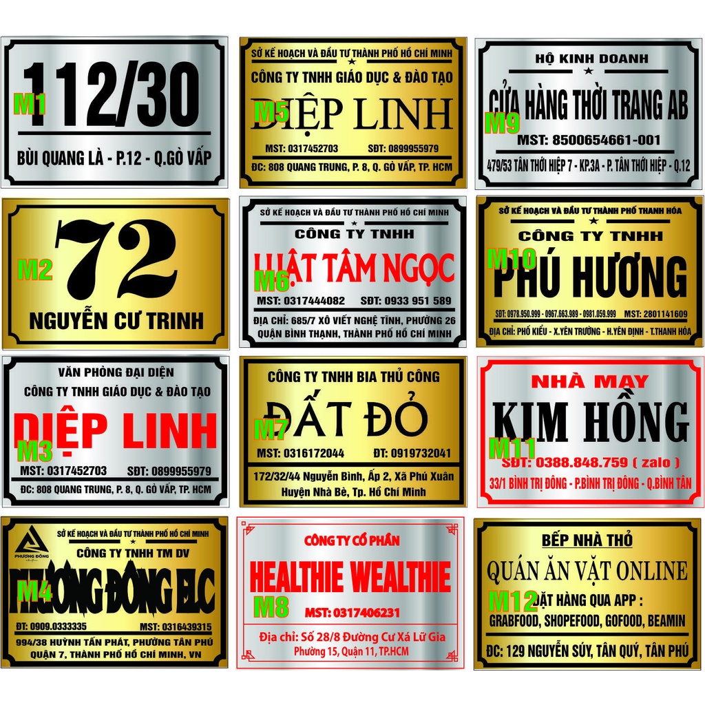 CÓ HÀNG TRONG VÒNG 2H KỂ TỪ KHI DUYỆT MẪU. Mẫu biển số nhà, bảng số nhà, phòng ban, phòng chức năng, biển công ty...loại cao cấp - Kích thước 16x16cm, 16x26cm, 20x30cm, 30x40cm ( số nhà - biển công ty - phòng ban) - Thiết kế theo yêu cầu vui lòng liên hệ chat Shopee,