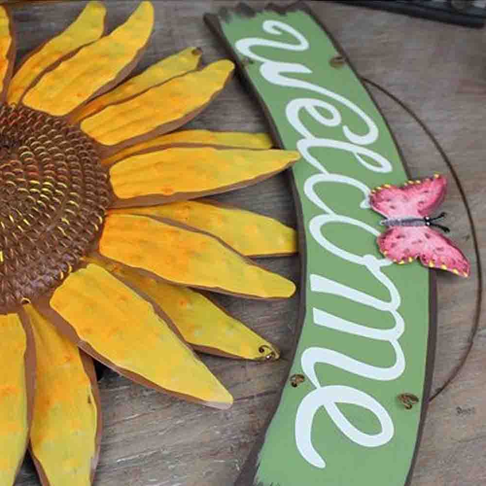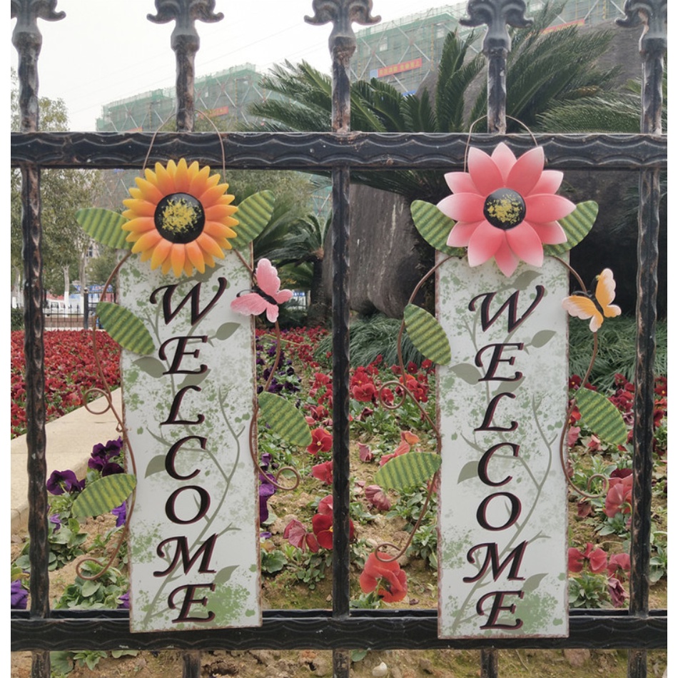 Bảng Gỗ Treo Tường In Hoa Hướng Dương / Chữ Welcome Bằng Kim Loại Trang Trí Nhà Cửa / Sân Vườn