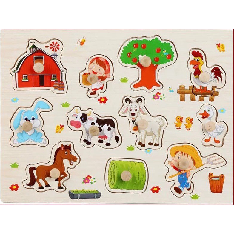 - Giáo cụ tuyệt vời để ba mẹ dạy bé phát triển trí tuệ ngay từ 1 tuổi - Với nhiều chủ đề: Số, chữ, hình dạng khối, động vật, phương tiện giao thông, rau củ, hoa quả... - Đồ chơi Bảng ghép hình có núm cầm được làm từ chất liệu gỗ an toàn với các chi tiết được xử lý nhẵ