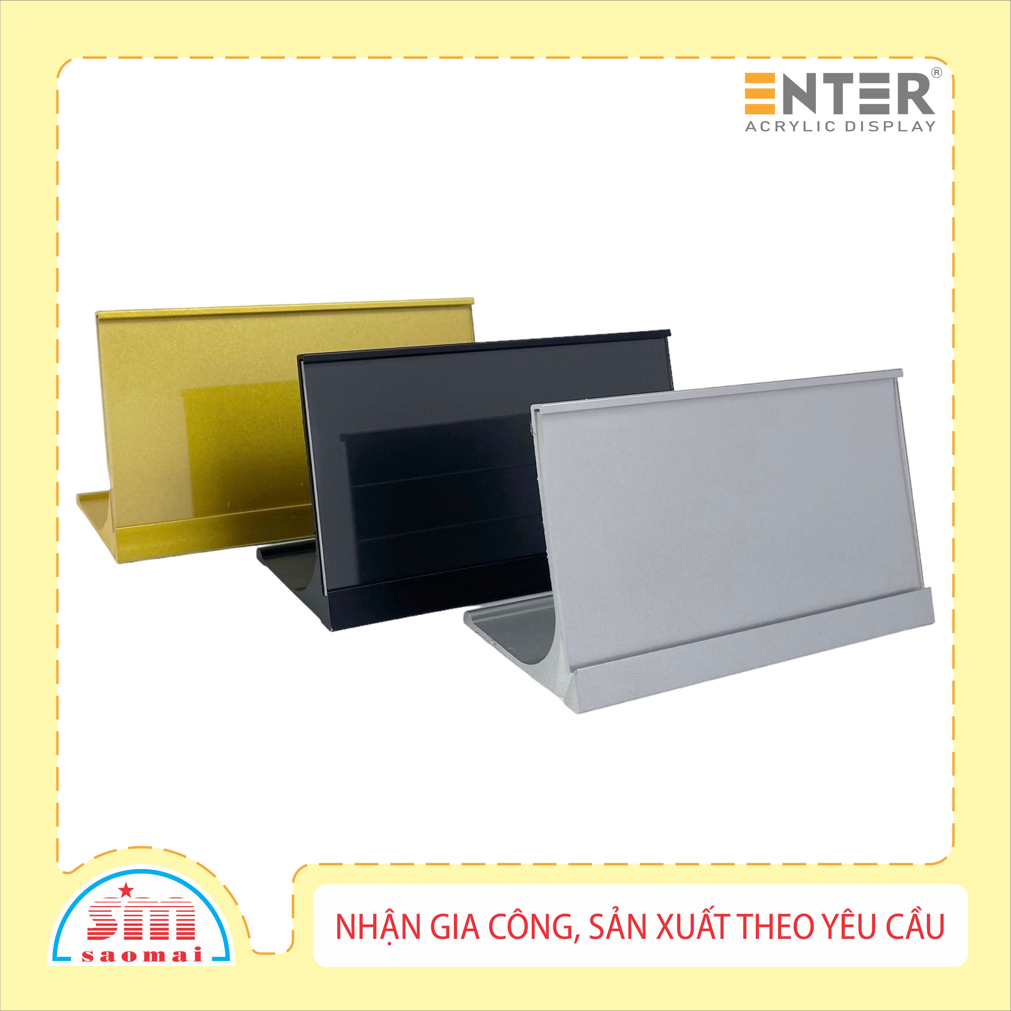 Bảng thông tin để bàn nhôm Enter AL32 150x75mm Chất liệu: Bảng thông tin để bàn nhôm Enter có thiết kế đơn giản, tuy nhiên lại tiện lợi khi sử dụng, mang lại tính thẩm mỹ và tác dụng quảng cáo, marketing cao... Thân kệ được làm từ nhôm chắc chắn, màu sắc sang trọng, không bị oxi hóa theo thời gian, dễ dàng vệ sinh. Mặt bảng được làm từ mica trong suốt chất lượng cao không bị đục, mờ, rạn nứt, dễ dàng nhìn rõ nội dung. Bảng thông tin để bàn dễ dàng thay đổi nội dung, tiết kiệm được chi phí mỗi khi thay đổi thực đơn, thay đổi thông tin khuyến mãi... Công dụng: Bảng thông tin để bàn nhôm Enter là sản phẩm làm từ nhôm cao cấp có công dụng hiển thị thông tin sản phẩm tại các nhà hàng, khách sạn... sản phẩm này còn được dùng như một standee để bàn quảng cáo sản phẩm một cách ấn tượng nhất. Sản phẩm có thể in hoặc khắc logo theo yêu cầu. Công ty TNHH VPP Khắc Dấu Sao Mai chuyên sản xuất các sản phẩm bằng mica giá rẻ, chất lượng: kệ mica 2 mặt, kệ mica 1 mặt, kệ chức vụ, kệ danh thiếp, kệ mica để tờ rơi, kệ mica nhiều tầng, bìa trình ký, khung hình cao cấp, thùng phiếu, hộp thư, đế chức danh, đế quân đội… Với máy móc, thiết bị hiện đại, Sao Mai có thể đáp ứng đa dạng các sản phẩm mica theo yêu cầu của Quý khách. Giá sản phẩm trên Tiki đã bao gồm thuế theo luật hiện hành. Bên cạnh đó, tuỳ vào loại sản phẩm, hình thức và địa chỉ giao hàng mà có thể phát sinh thêm chi phí khác như phí vận chuyển, phụ phí hàng cồng kềnh, thuế nhập khẩu (đối với đơn hàng giao từ nước ngoài có giá trị trên 1 triệu đồng).....
