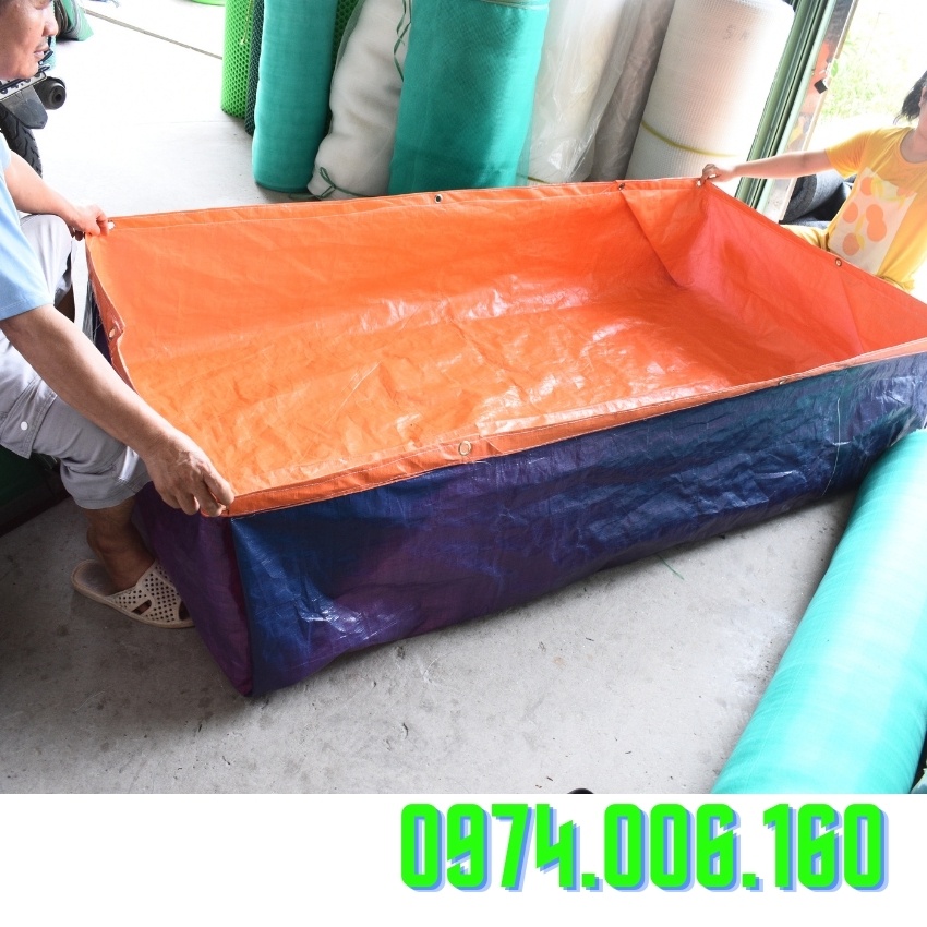 BỂ BẠT NUÔI ỐC, LƯƠN..hoặc làm BỂ BƠI TRẺ EM chất liệu PVC xanh cam siêu bền với kích cỡ tùy chọn. *CÔNG DỤNG: - Làm bể nuôi ốc, lươn... - Làm bể bơi cho trẻ em mùa hè nắng nóng. * CẤU TẠO: - Bạt xanh cam PVC siêu bền, không rỉ. - Đã gia công thêm