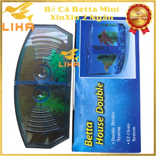 Bể Cá Betta Mini XinXin 2 Ngăn Size 20x8x15cm - 2 in 1 Hồ Nhựa Mica Nuôi Cá Để Bàn