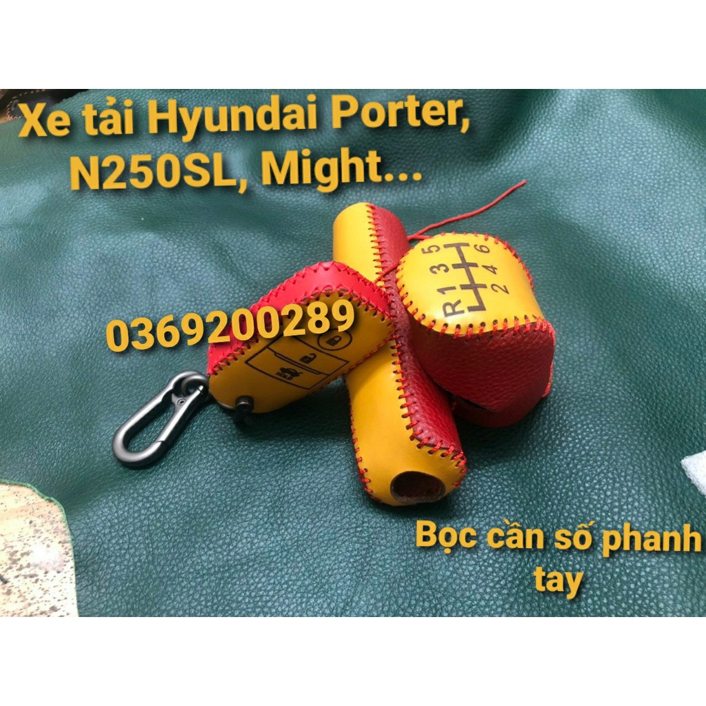 Bọc cần số phanh tay xe tải Hyundai Porter, N250SL, Mighty... bằng da bò thật khâu tay thủ công mẫu thiết kế mới nhất