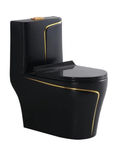 Bồn cầu đen viền vàng. Công nghệ men phủ nano chống bám bẩn. Nắp êm xả xoáy. Hàng nhập khẩu Thailand. Sản phẩm nhập khẩu được bảo hành chính hãng 10 năm trên toàn quốc. Ngoài ra cty chúng tôi còn cung cấp các sản phẩm thiết bị vệ sinh của hãng Royal HP Thailand : bồ