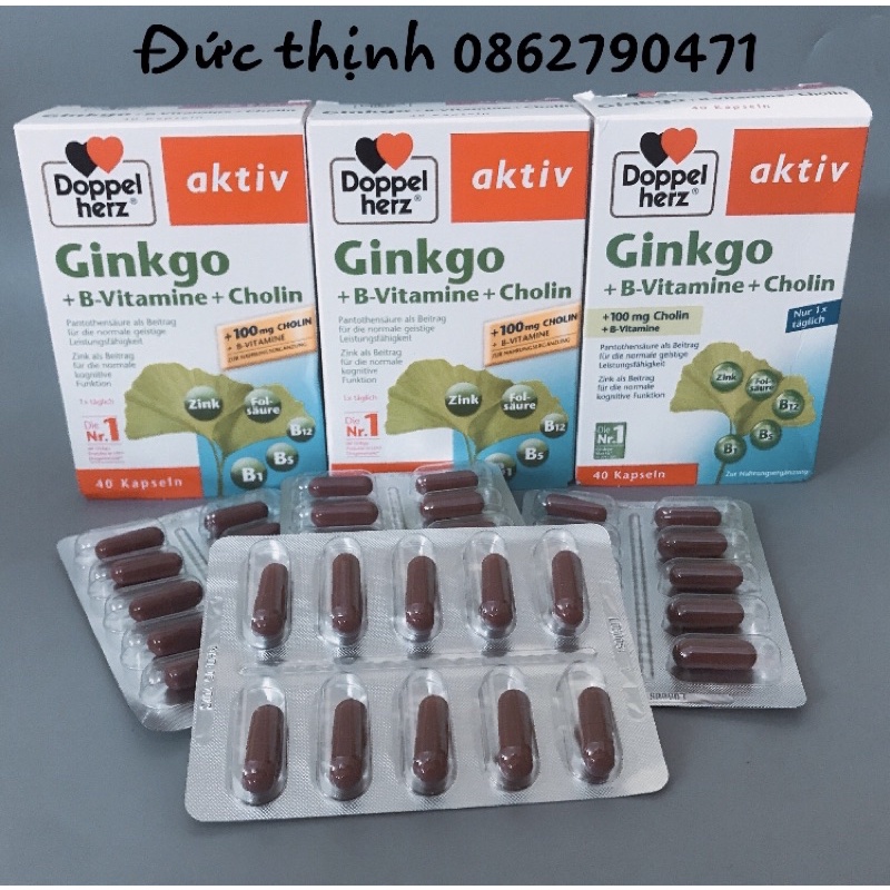 Bổ não Ginkgo Đức Doppelherz aktiv - Viên uống bổ não , cải thiện trí nhớ , lưu thông tuần hoàn máu não - Hộp 40 Viên