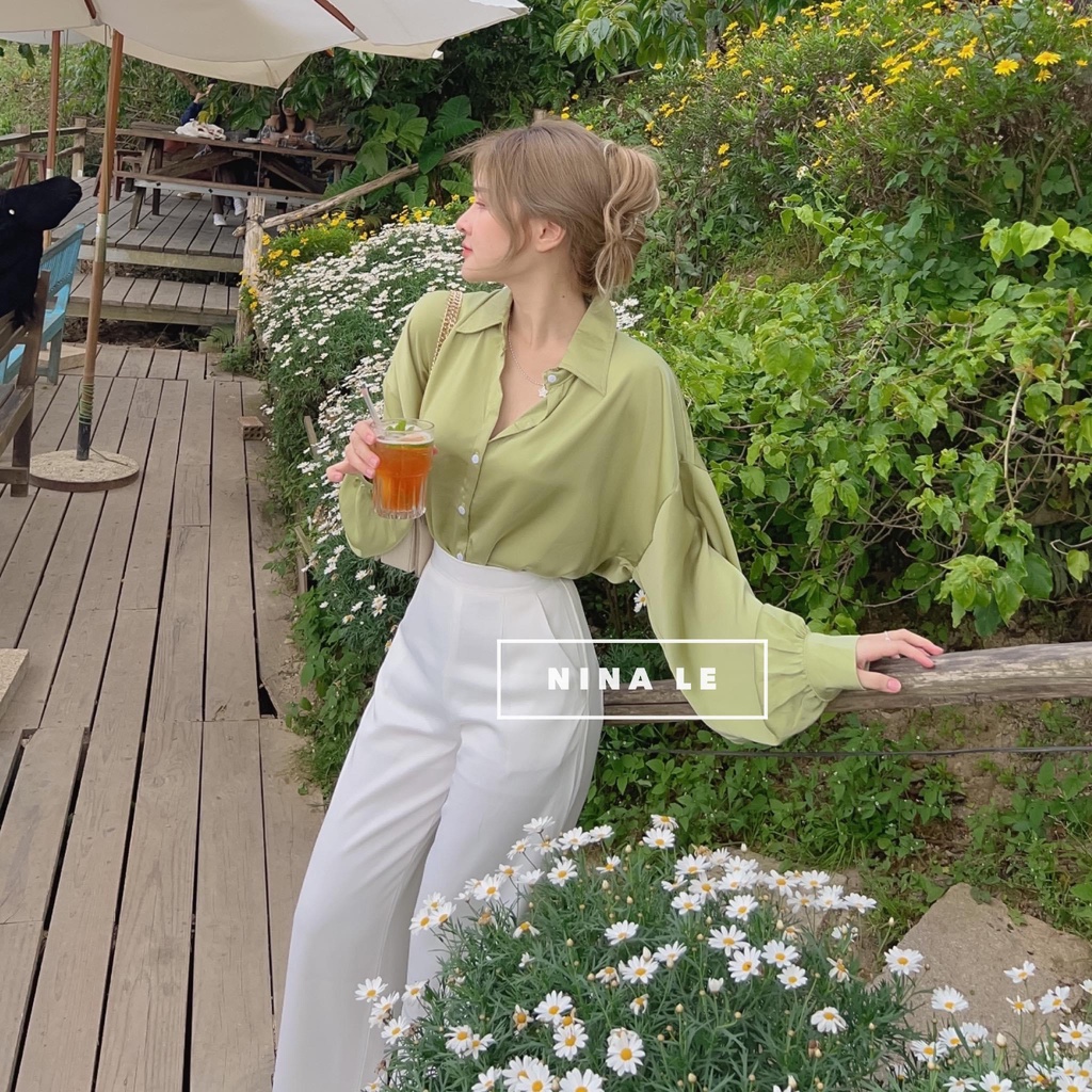 Bộ Áo Sơ Mi Xanh Quần Culottes Dáng Rộng 🦋 Set Áo Quần Dài Công Sở Nữ 🦋