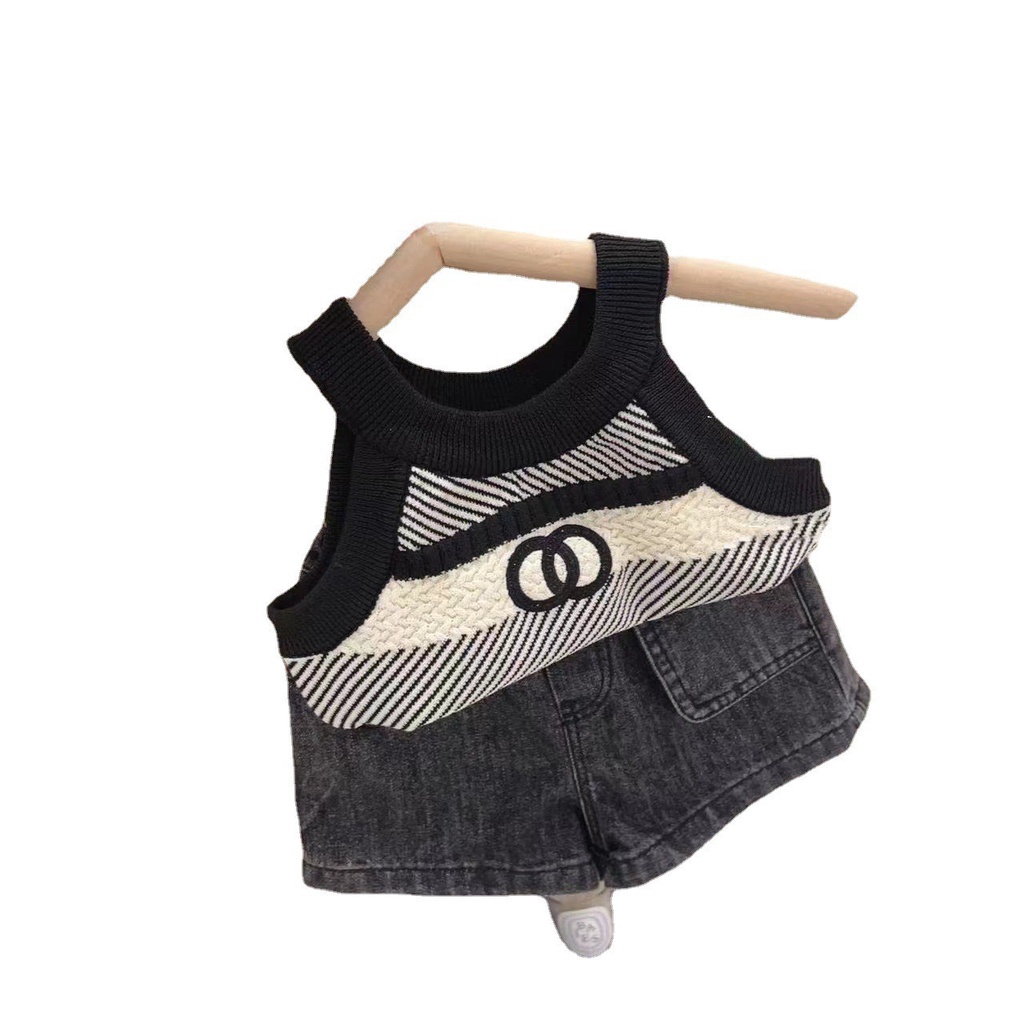 Bộ Áo Tank Top Kẻ Sọc + Quần Short Denim Thời Trang Mùa Hè Hàn Quốc Cho Bé Gái