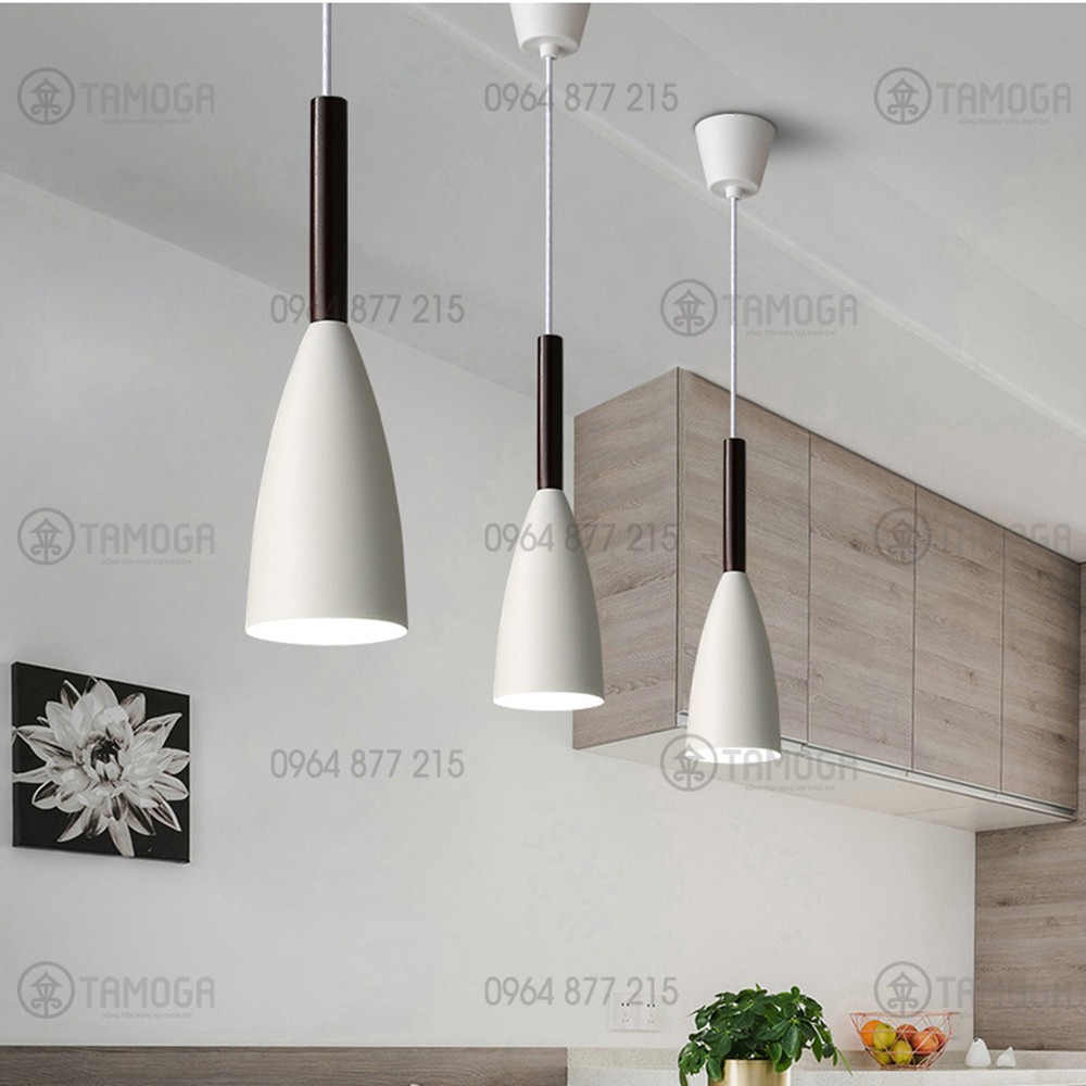Bộ đèn thả 3 bàn ăn hiện đại chuôi gỗ DT 7582 + Tặng kèm bóng led AS Vàng