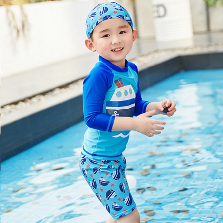 Bộ đồ bơi dài tay kèm nón bơi - Đồ bơi dài tay bé trai