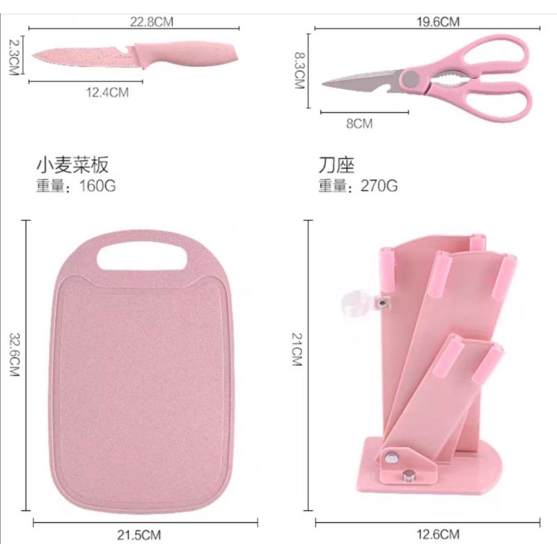 BỘ ĐỒ BẾP COMBO SET DAO KÉO THỚT LÚA MẠCH MÀU HỒNG PHONG CÁCH BẮC ÂU