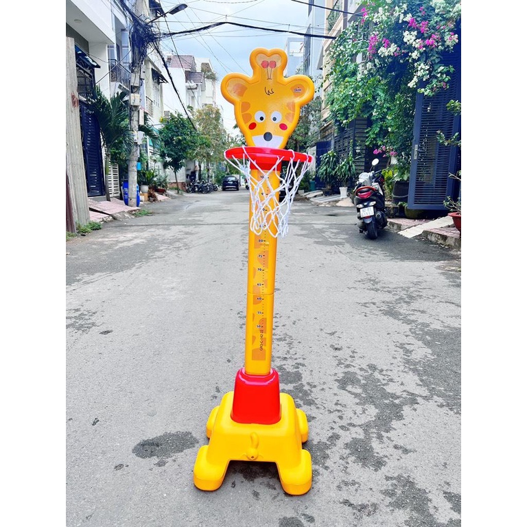 Bộ đồ chơi bóng rỗ kèm 1 trái banh, có decal dán đo chiều cao cho bé