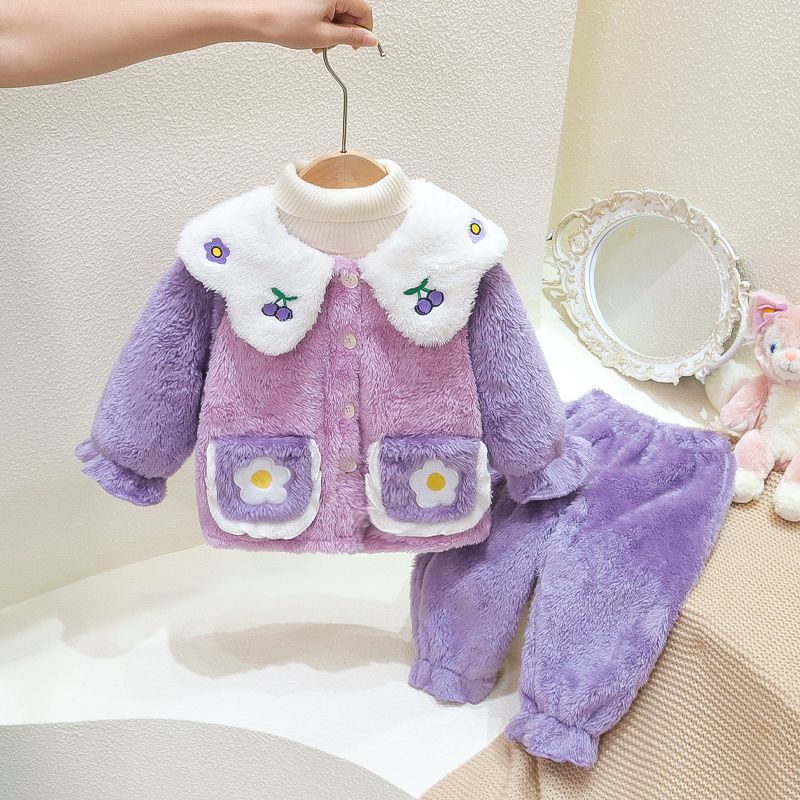 Bộ Đồ Ngủ Bằng Vải Flannel Lông Cừu San Hô Dễ Thương Thời Trang Thu Đông Cho Bé Gái
