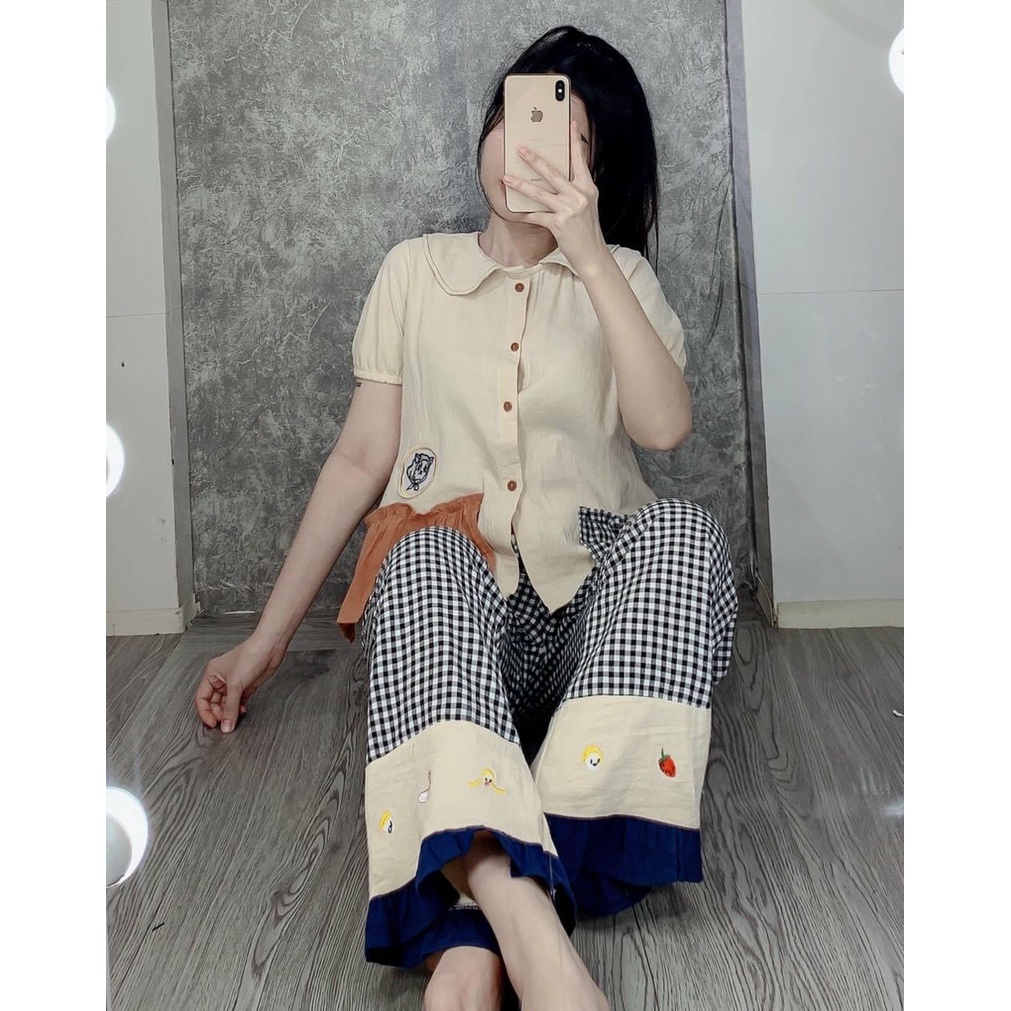Bộ đồ ngủ chất liệu vải lụa mát, mịn, thiết kế họa tiết trẻ trung,Kèm Siêu Quà Tặng - 𝑲𝒉𝒐 𝒔𝒊̉ 𝑺𝒂̀𝒊 𝑮𝒐̀𝒏