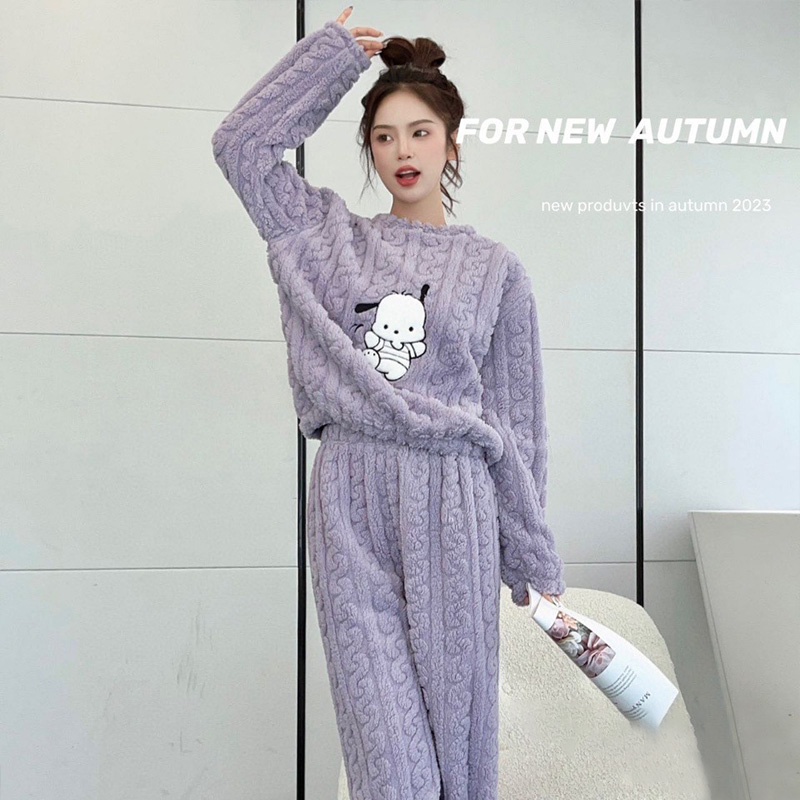 Bộ Đồ Ngủ Chất Nhung Họa Tiết Hoạt Hình Dễ Thương Cho Nữ