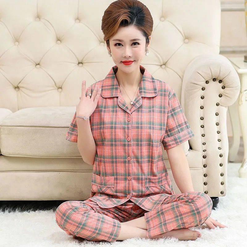 Bộ đồ ngủ ngắn tay plus size thời trang cho phụ nữ trung niên