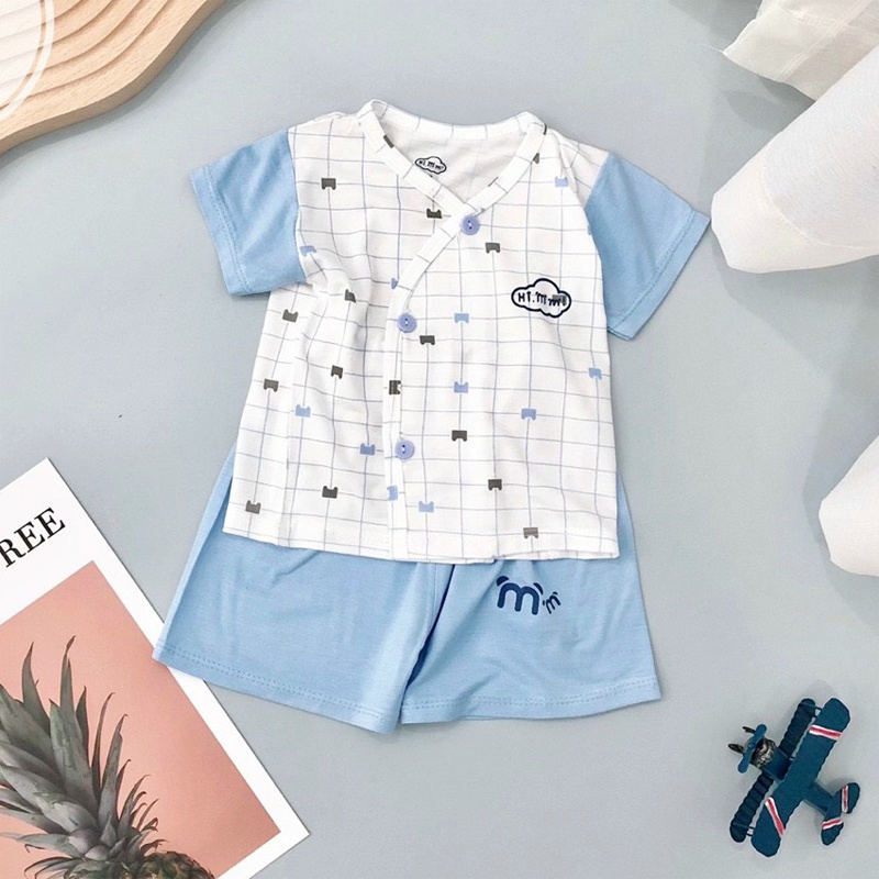 Bộ đồ sơ sinh cộc tay bé trai, bé gái 0-9 tháng chất petit mềm mịn mát co giãn 4 chiều hãng HIMOM _ B36