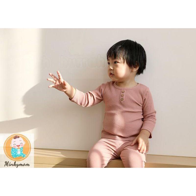 Bộ Đồ Thun Gân Dài Tay 3 Cúc Thu Đông