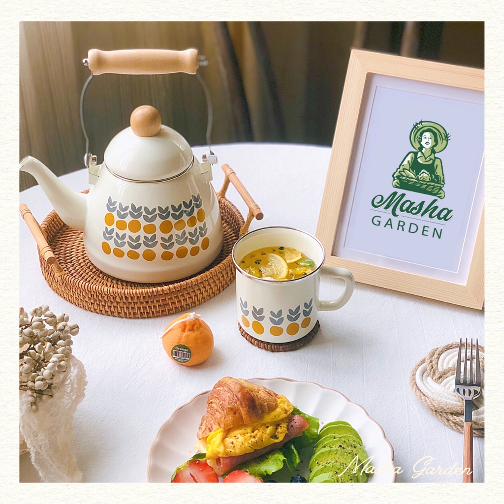 Bộ Ấm Cốc Tráng Men Vintage Nhật Bản Dùng Được Trên Mọi Loại Bếp | Masha Garden