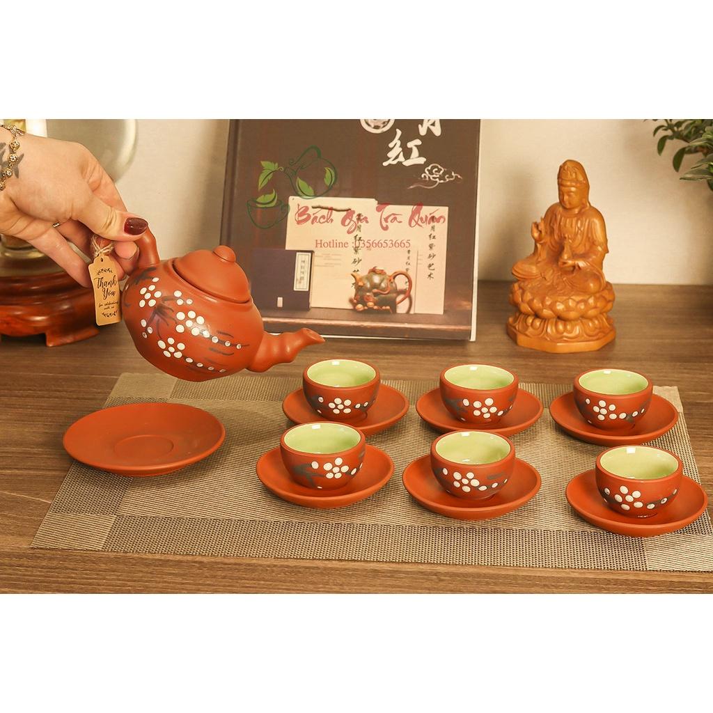 Bộ Ấm Chén Gốm Tử Sa Bát Tràng - Họa Tiết Hoa Anh Đào ACBT06