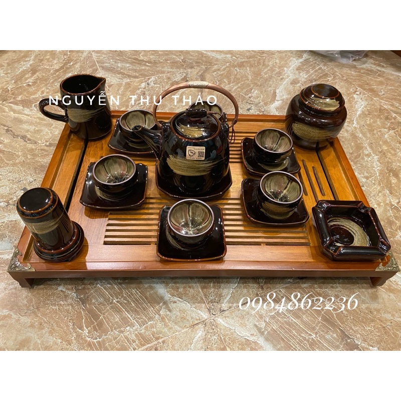 Bộ trà tuyệt phẩm men hoả biến nâu quết của nghệ nhân Tô Thanh Sơn - Bát Tràng đẹp xuất sắccc 💯💯💯 ✅ Họa tiết Hoa trong chén được làm thủ công tinh tế ✅ Có mã QR check chính hãng ✅ Bộ gồm : 1 ấm 6 chén 7 đĩa kê ✅ phụ kiện 4 món sứ gồm: gạt tàn, lọ chè, ống tăm, bình r