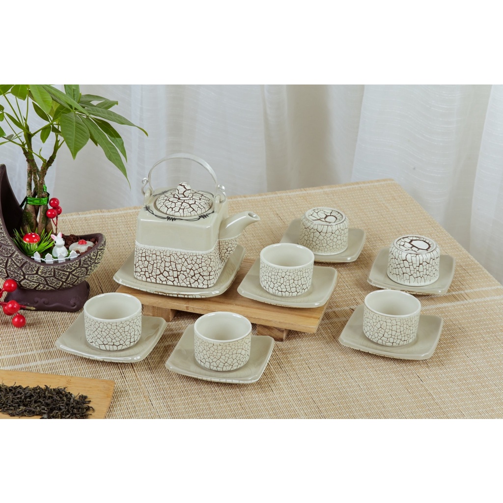 Bộ Ấm Chén Men Màu Rạn Dáng Vuông 400ml Gốm Sứ Bát Tràng Cao Cấp