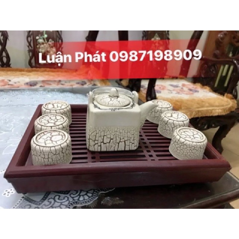 Bộ ấm chén men rạn kèm khay gốm sứ Bát Tràng , nhận in logo trên ấm chén