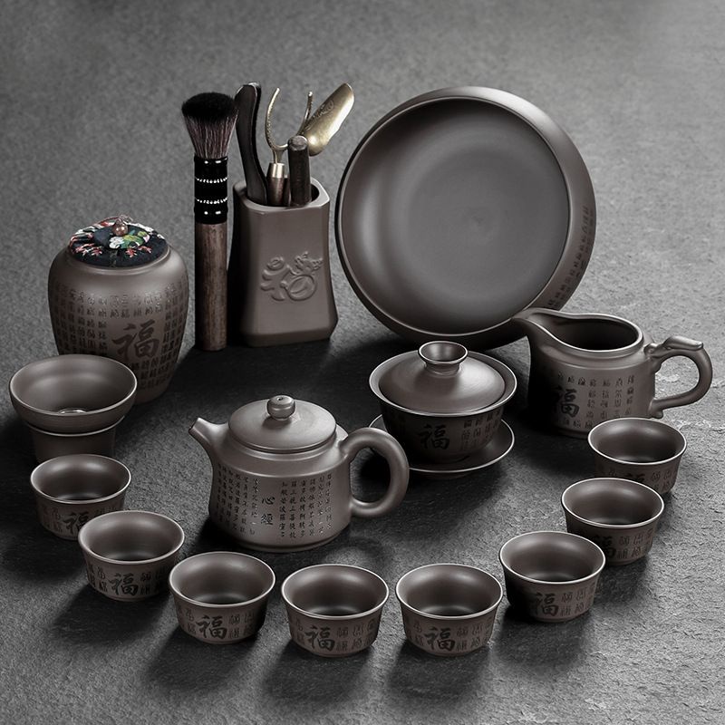 Bộ ấm trà tử sa 21 món Cảnh Lan- Cát Long mang lại sự cát tường