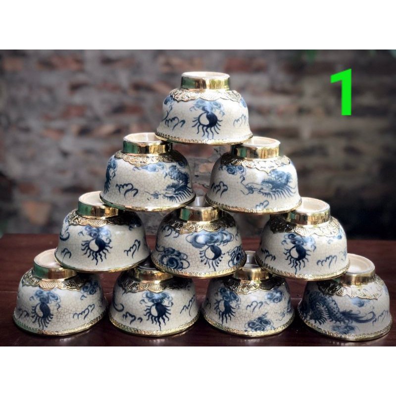 Bộ 10 bát rồng men dạn bọc đồng cực đẹp cực sang