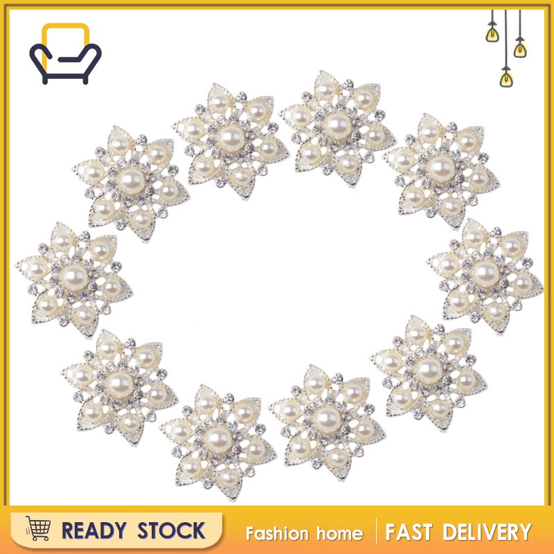 Bộ 10 Nút Áo Hình Hoa Đính Đá Và Ngọc Trai Nhân Tạo Thời Trang Diy