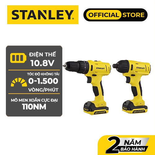 Bộ 2 máy: khoan + vặn vít dùng pin 12V Stanley SCHI121S2FK, Tặng kèm áo thun Stanley chính hãng