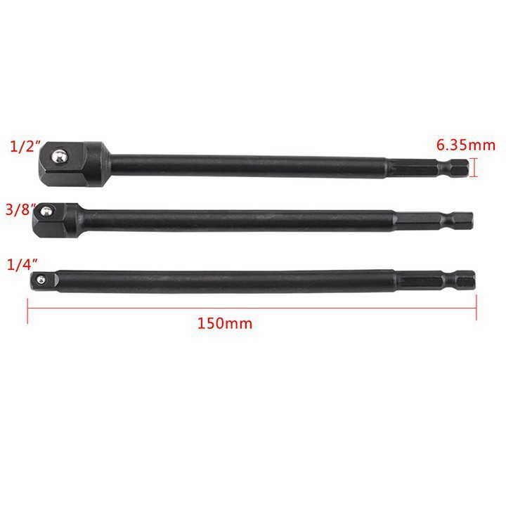 Bộ 3 đầu chuyển vặn khẩu cho máy khoan pin, máy khoan điện chuôi lục giác dài 150mm