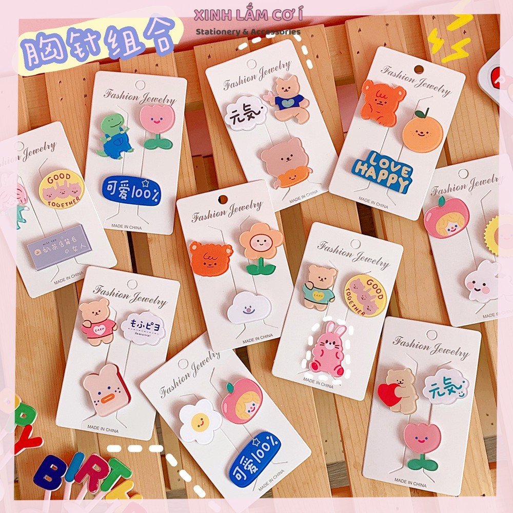 Bộ 3 Huy Hiệu Cài Áo Kiểu Hoạt Hình Siêu Đáng Yêu