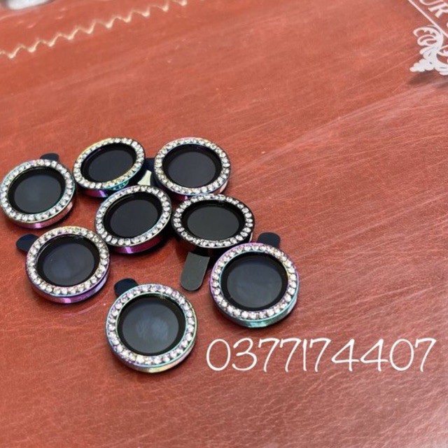 Bộ 3 mắt dán bảo vệ camera kim cương iphone 14, 13 12 Mini, 12, 12 Pro Max, 11 đính đá hạt siêu đẹp titan 7 màu cầu vồng