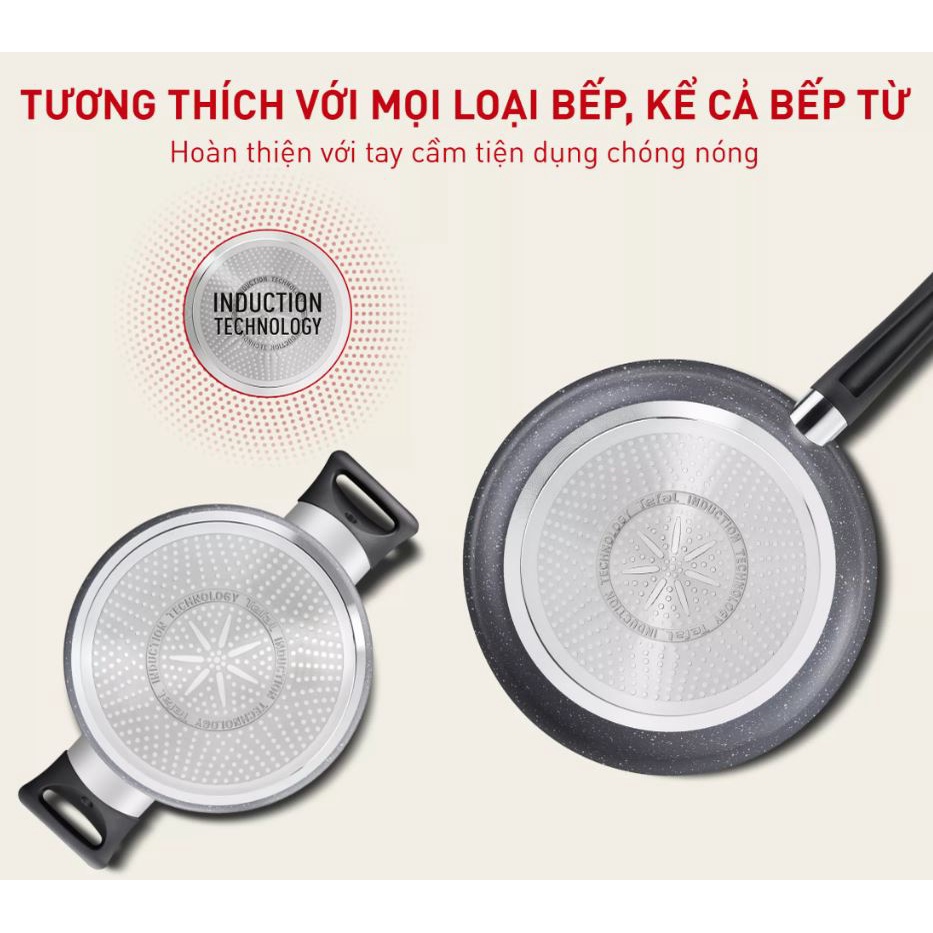 Bộ 3 nồi chảo chống dính đáy từ vân đá Tefal Cook Healthy G134S295 dùng cho mọi loại bếp