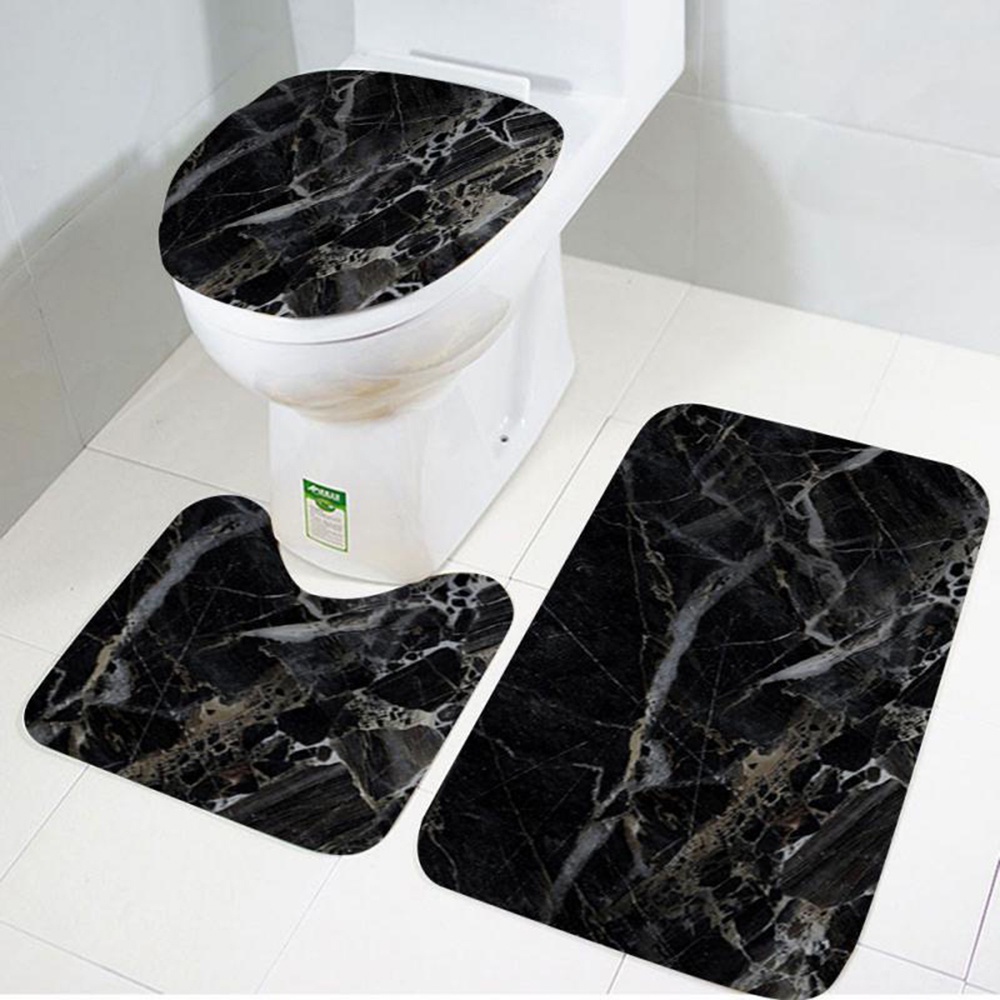 Bộ 3 tấm lót trang trí nhà tắm cho nắp bồn cầu + thảm lót chống trượt họa tiết vân đá